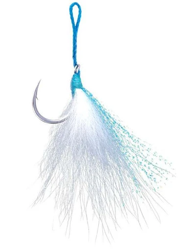 Developed for improved performance with fast jigging applications, the BKK SF Reefmaster HG Assist Hooks offer maximum reliability and add an extra bit of flare to your presentation. These hooks come pre-tied with a quality assist cord that achieves impressive strength ratings while remaining limber to give the hooks a free range of motion. Each hook is dressed with high quality natural hair fibers to enhance the jig’s presentation. The hooks themselves feature a variety of BKK technologies to improve overall performance such as an extra-sharp Hand Ground hook point, perfectly welded micro ring, and a Bright Tin coating for excellent corrosion resistance in saltwater environments.