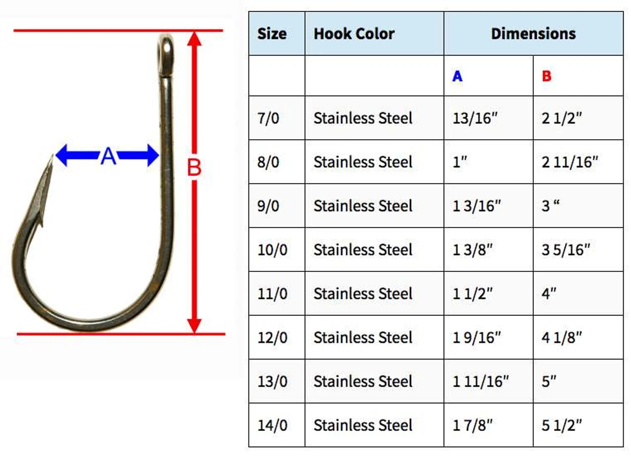 Quick Rig?s Southern and Tuna Hooks are hand made, hand forged and made of stainless steel. Check out the point and small barb. The barb is placed further back, which allows the point to get a bigger bite and faster penetration on the strike.