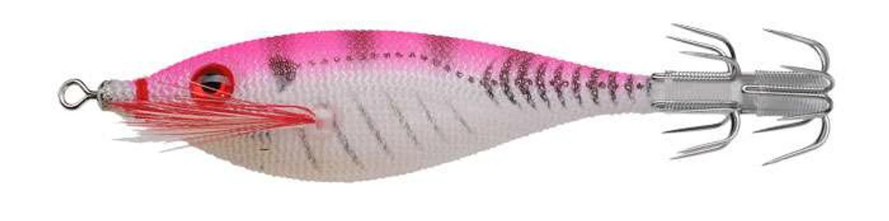 The Yo-Zuri Squid Jig Ultra Cloth Lure is made with a strong polycarbonate material wrapped in a luminous cloth for more realistic feel. This more delicate feel drives squid to attack longer, for an increased hook up ratio. This lure features small feathered pectoral fins, swivel line tie, and sticky sharp hooks.