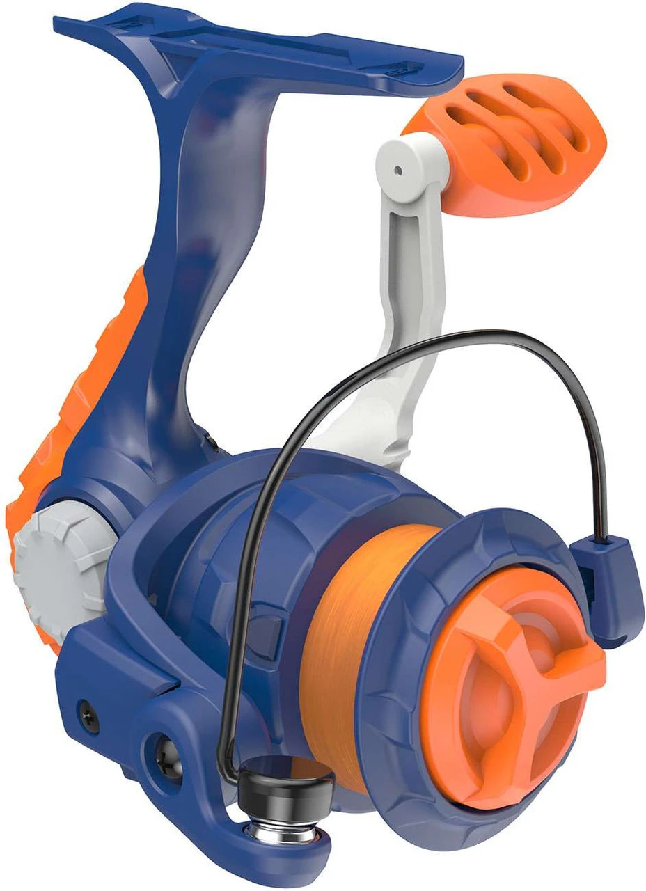 The durable, yet smooth Zebco Wilder Spinning Combo is just the right size and style for young anglers. With a built-in carabiner clip for hands-free portability, all-metal gears, and a durable fiberglass rod, this easy-to-use rod and reel spinning combo is a perfect fit for developing anglers.